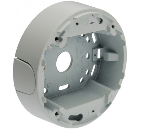 Vandal resistant aluminum back box accessory for AXIS P33-/V series indoor cameras (except P3301/04) which enables safe cabling through 3/4" conduits.